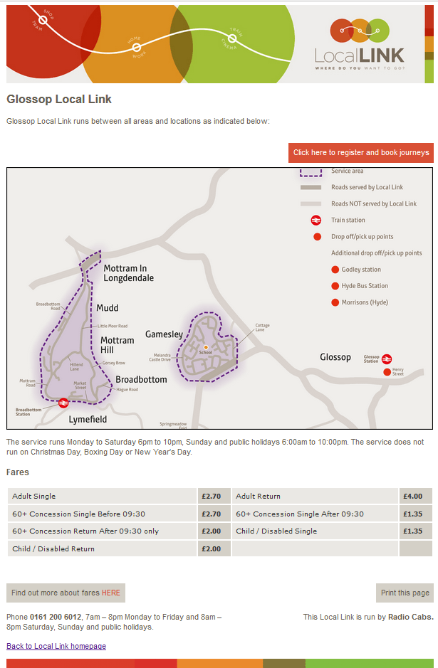 Changes to the Glossopdale Local Link : At the end of January, there were changes to the Tameside-based Local Link services which are linked to the Glossopdale one, initially these changes were advised to only effect the Tameside service, with no changes to the Glossopdale one.